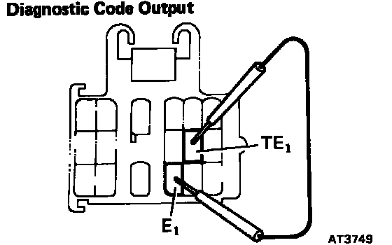(b) The diagnostic code can be read by the number of blinks of the overdrive OFF indicator light when terminals TE1 and E1 are connected.