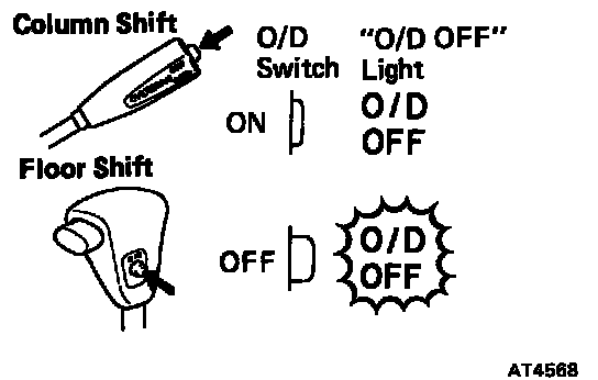 2. The "O/D OFF" light will come on when the O/D switch is placed at OFF.
