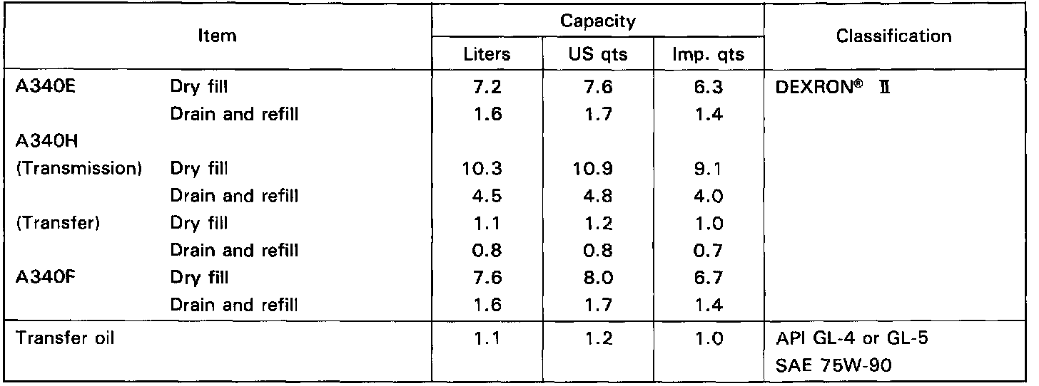 Recommended fluid: Dexron II/III
