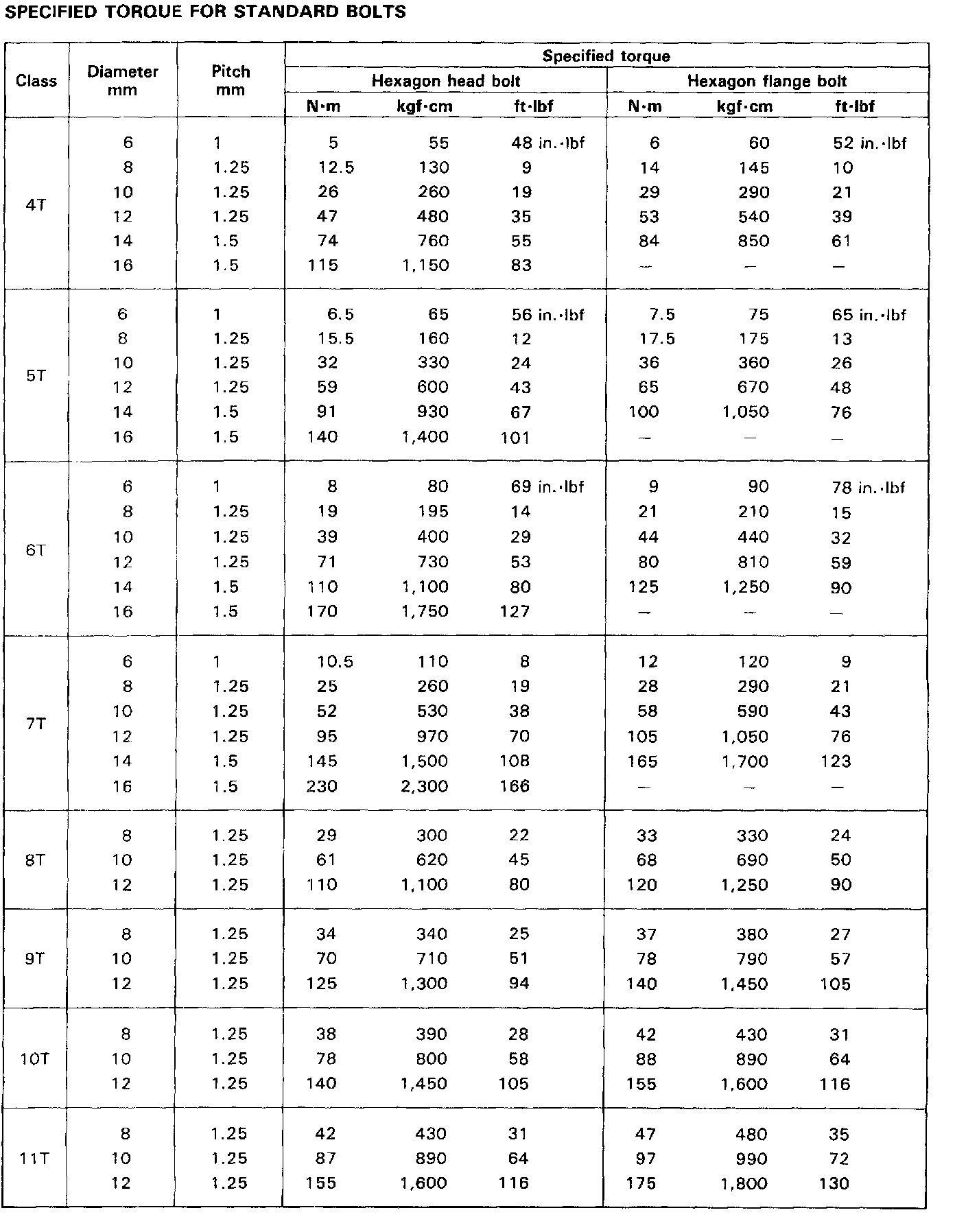 STANDARD BOLT TORQUE SPECIFICATIONS
