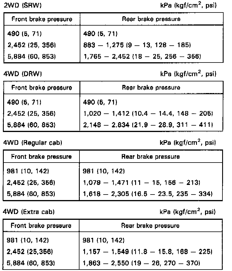NOTE: Check the brake pressures with the valve body set at the uppermost position.