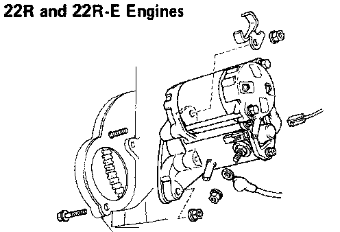 NOTE: Some Toyota models have an access plate in the fender well to facilitate starter service. Check for such an access point before beginning starter service.REMOVAL OF STARTER
