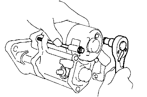 Disconnect the negative (-) lead from the switch body. Check that the clutch pinion gear returns inward. If the clutch pinion gear does not return, replace the magnetic switch assembly.