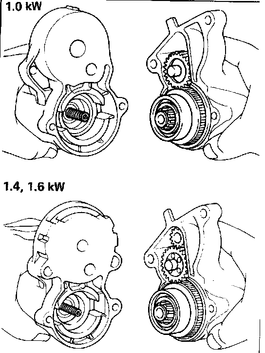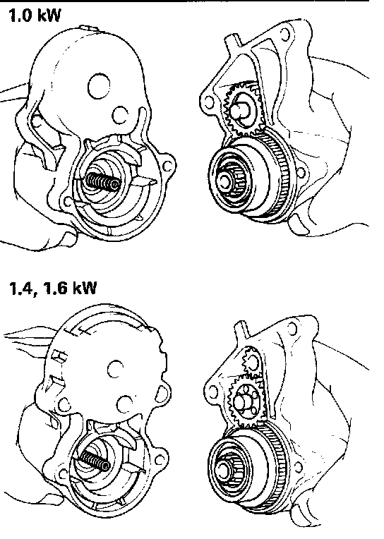 (b) Remove the starter housing with the pinion gear (1.4, 1.6 kw), idler gear, bearing and clutch assembly.