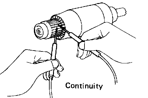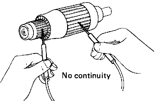 Using an ohmmeter, check that there is no continuity between the commutator and armature coil core. If there is continuity, replace the armature.