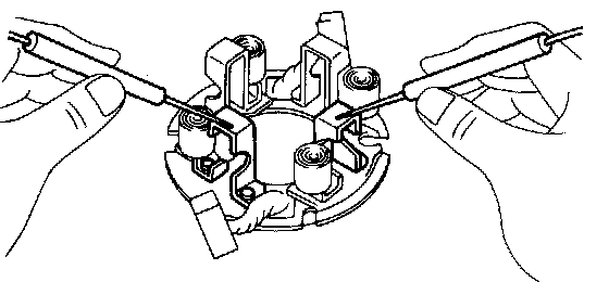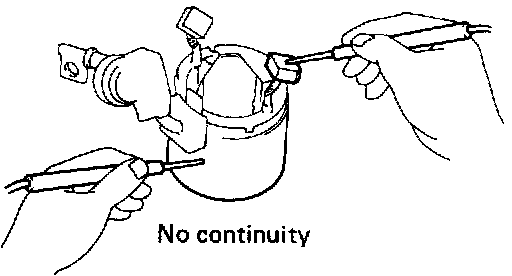 Using an ohmmeter, check that there is no continuity between the positive (+ and negative (-) brush holders. If there is continuity, repair or replace the brush holder.