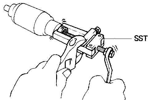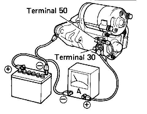 (b) Check that the starter rotates smoothly and steadily with the pinion gear moving out. Check that the ammeter reads the specified current. Specified current: 90 A or less at 11.5 V