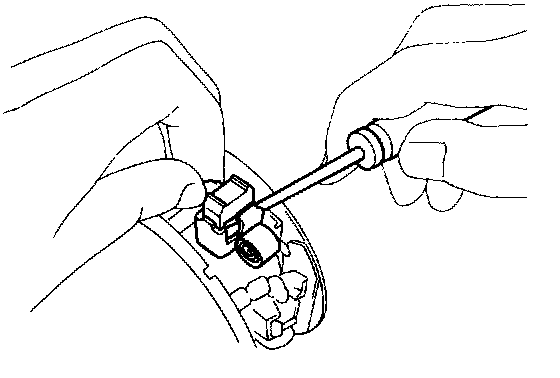 (b) Using a screwdriver, hold the spring back and disconnect the brush from the brush holder. Disconnect the four brushes and remove the brush holder.