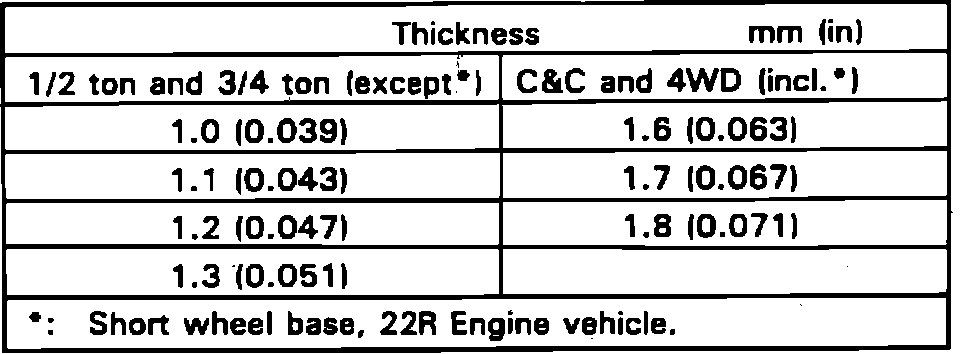 Fig. 16 Side Gear Thrust Washer Identification. Pickup. Previa & 4Runner: