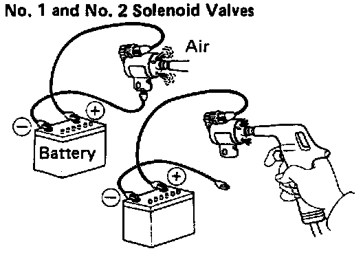 - Check that the shift solenoid valves do not leak when low-pressure compressed air is applied.