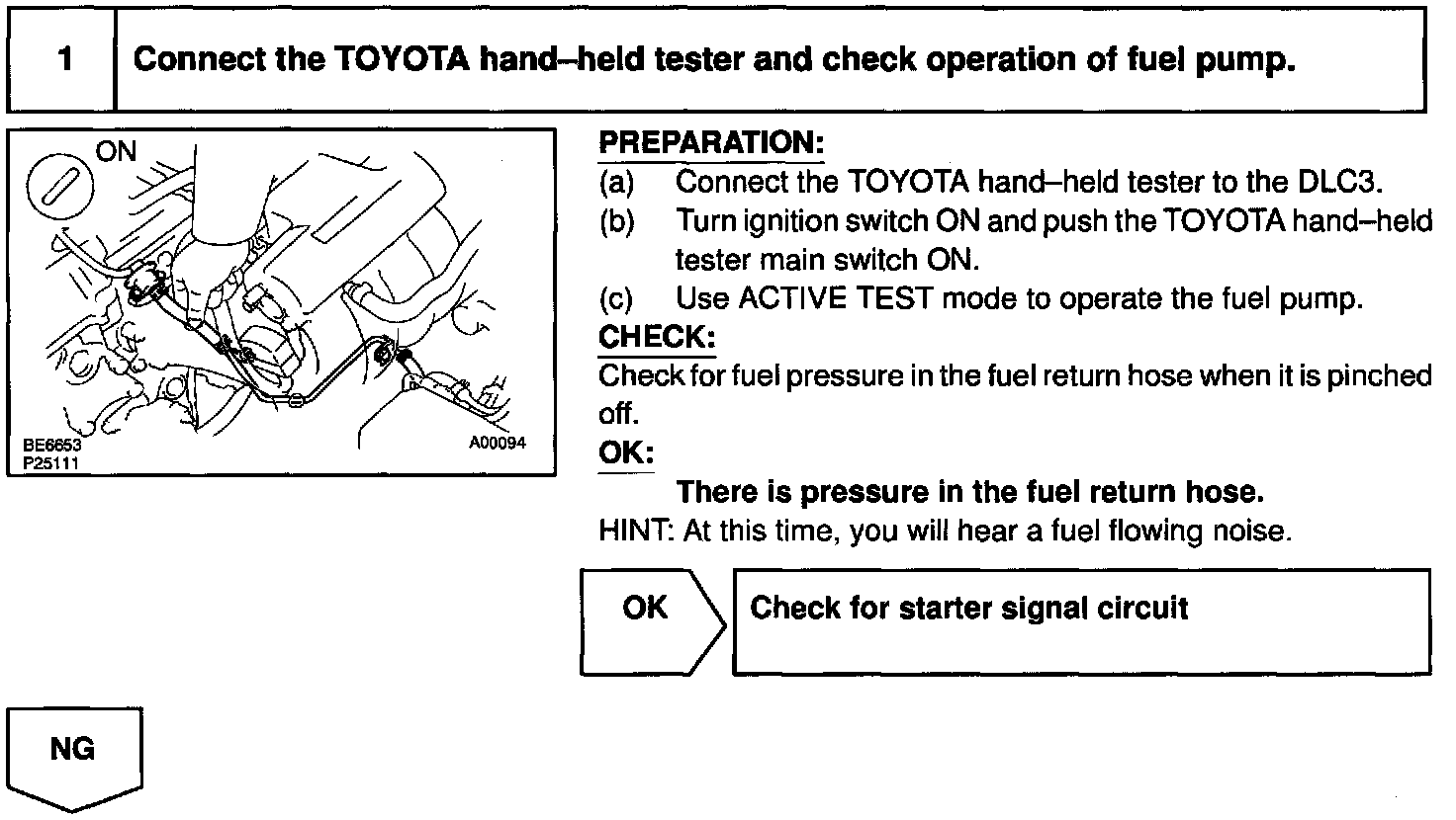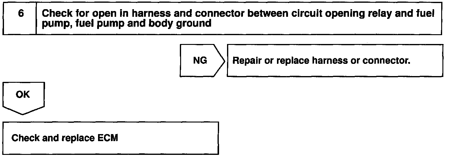 While the NE signal is generated (engine running), the ECM keeps Tr ON (circuit opening relay ON) and the fuel pump also keeps operating.