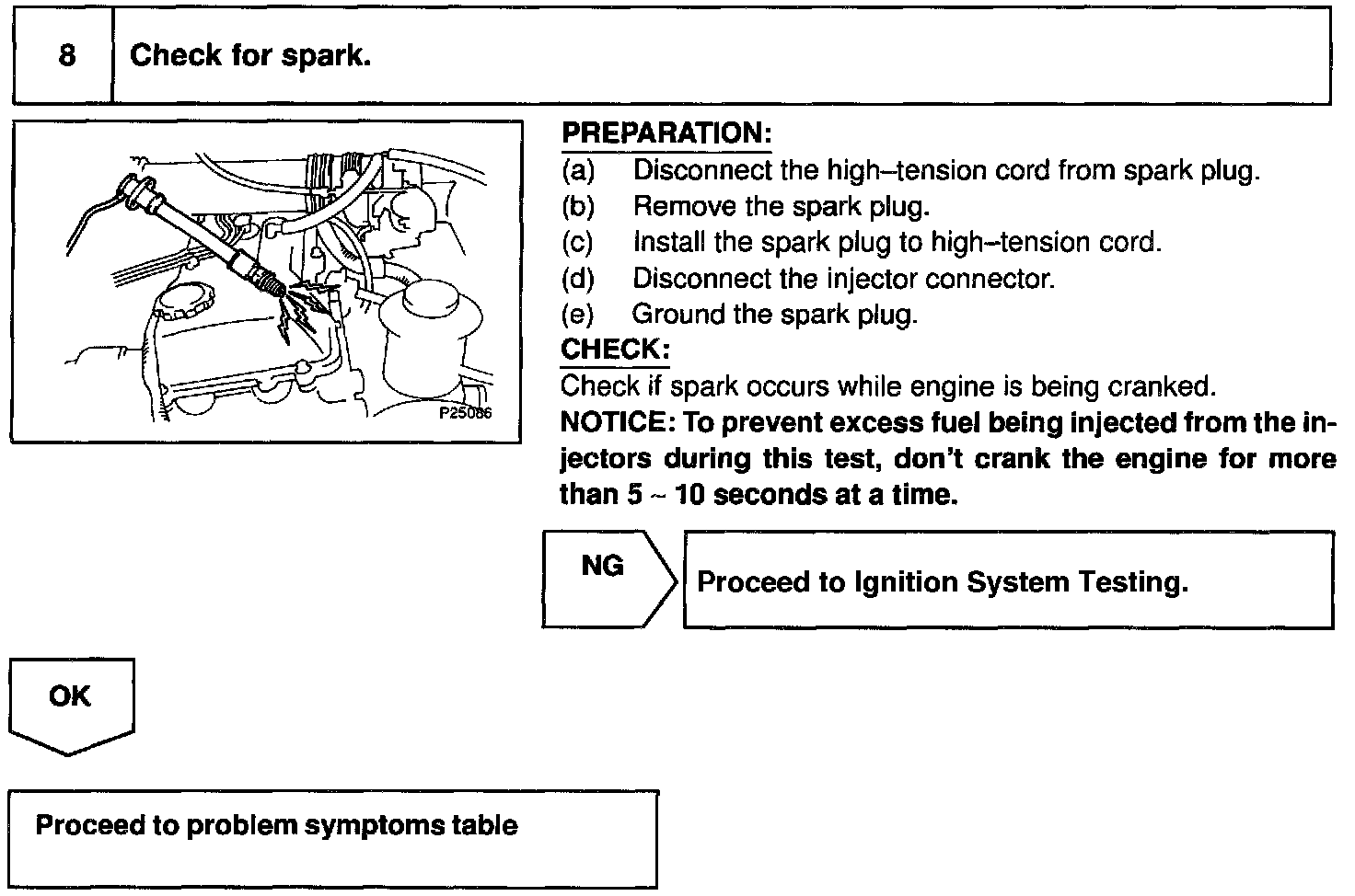 When the malfunction code is not confirmed in the DTC check, troubleshooting should be performed in the order for all possible circuits to be considered as the causes of the problems. In many cases, by carrying out the basic engine check shown in the above flow charts, the location causing the problem can be found quickly and efficiently. Therefore, use of this check is essential in engine troubleshooting�0m.