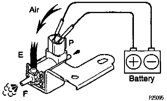 (c) Check that air flows from ports E to P, and does not flow from ports E to F.