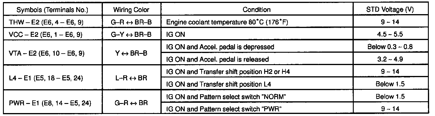 Pinout Values and Diagnostic Parameters
