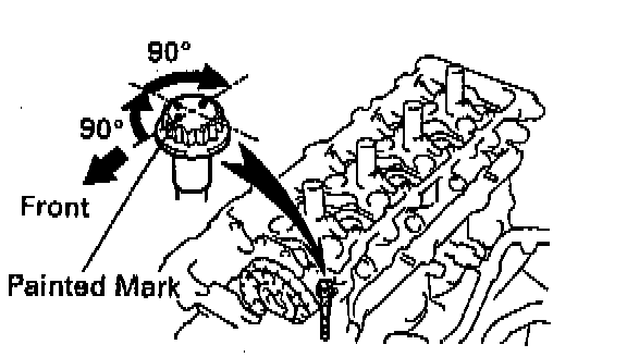 NOTE: Before making 2nd pass, mark the front of the cylinder head bolt head with paint.