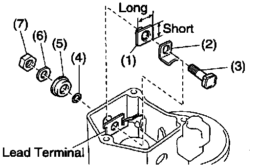 Remove the terminal nut, wave washer, terminal insulator (outside), O-ring, terminal bolt, contact plate and terminal insulator (inside).