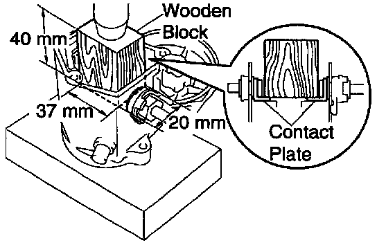 a. Put a wooden block on the contact plate and press it down with a hand press.