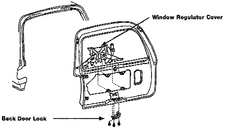 1. Remove the back door window regulator assembly.