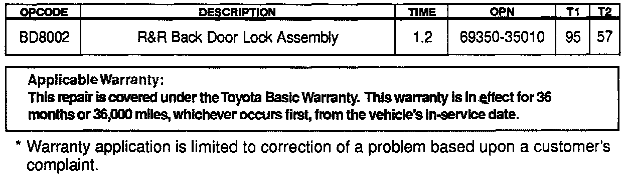 The back door look mechanism for 1996 and 1997 4Runners has been modified as follows: