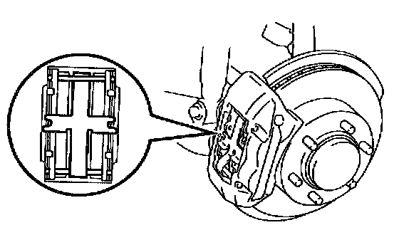 CAUTION: When replacing worn pads, the anti-squeal shims must be replaced together with the pads.