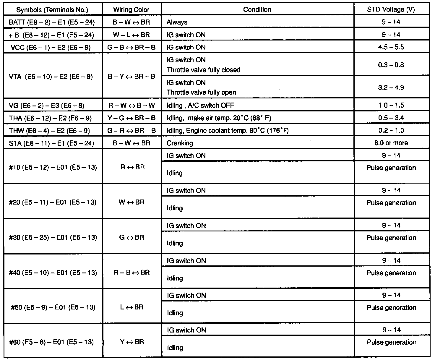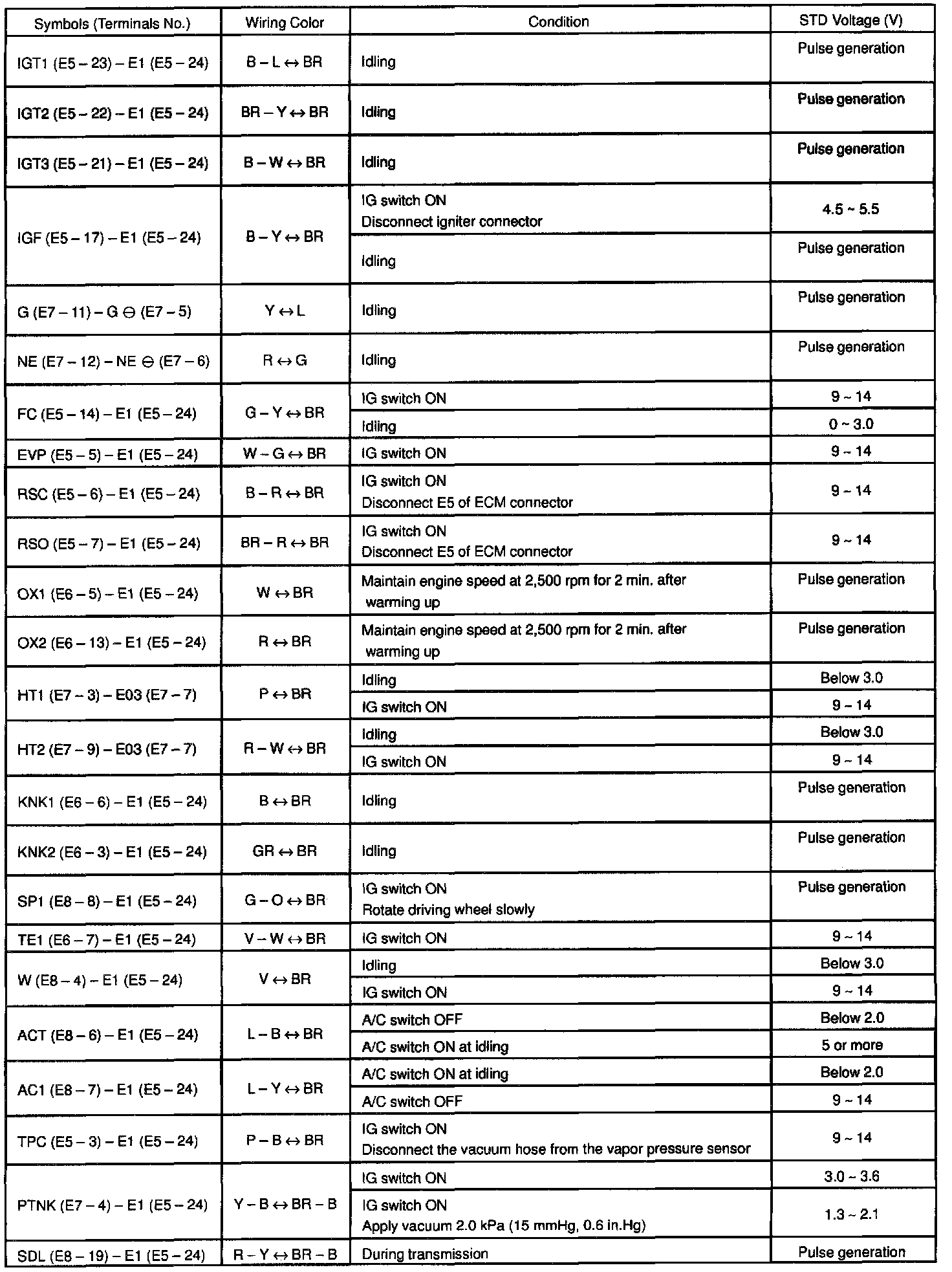 Standard Value Of ECM Terminals Chart 2 Of 2: