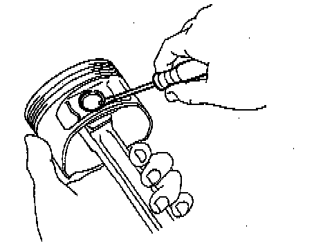 3. Using a plastic-faced hammer and brass bar, lightly tap out the piston pin and remove the connecting rod.