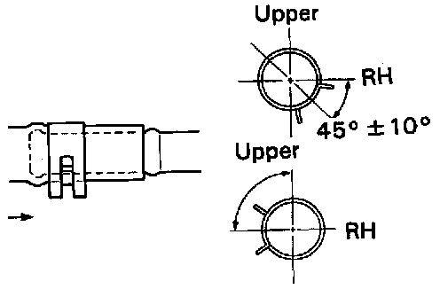 ^ Push the water hose onto the heater radiator pipe as far as the ridge on the pipe.