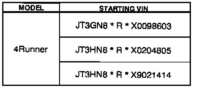 ^ 1996-1999 model year 4Runners built before the VINs listed.