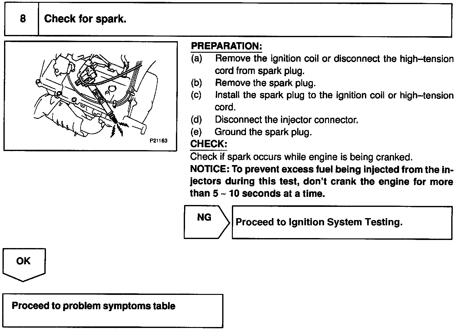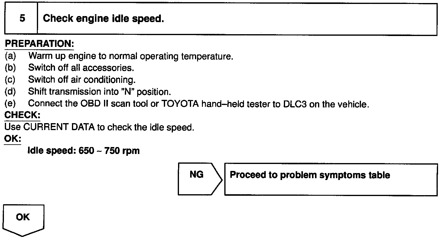 When the malfunction code is not confirmed in the DTC check, troubleshooting should be performed in the order for all possible circuits to be considered as the causes of the problems. In many cases, by carrying out the basic engine check shown in the following flow chart, the location causing the problem can be found quickly and efficiently. Therefore, use of this check is essential in engine troubleshooting.