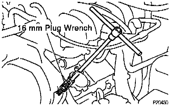 Using a 16 mm plug wrench, remove the 6 spark plugs from the RH and LH cylinder heads.