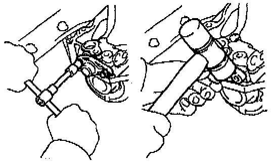 c. Using a pin punch and hammer, remove the slotted spring pin.