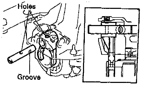 c. Install the fork shaft to match the hole of the shift fork and that of the shift fork shaft.