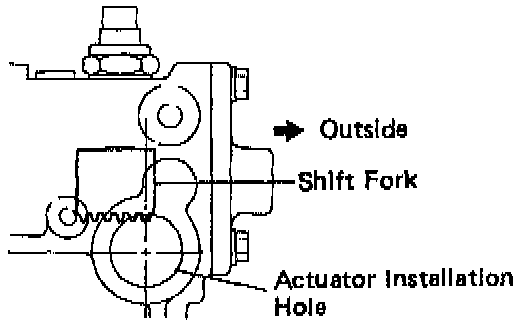 a. Check that the outermost rack tooth of the shift fork is virtually above the center line of the actuator installation hole.