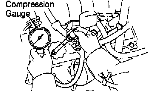 (e) If the cylinder compression in one or more cylinders is low, pour a small amount of engine oil into the cylinder through the spark plug hole and repeat steps (a) through (c) for cylinders with low compression.