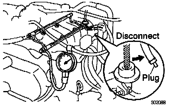 (n) Disconnect the vacuum sensing hose from the fuel pressure regulator, and plug the hose end.