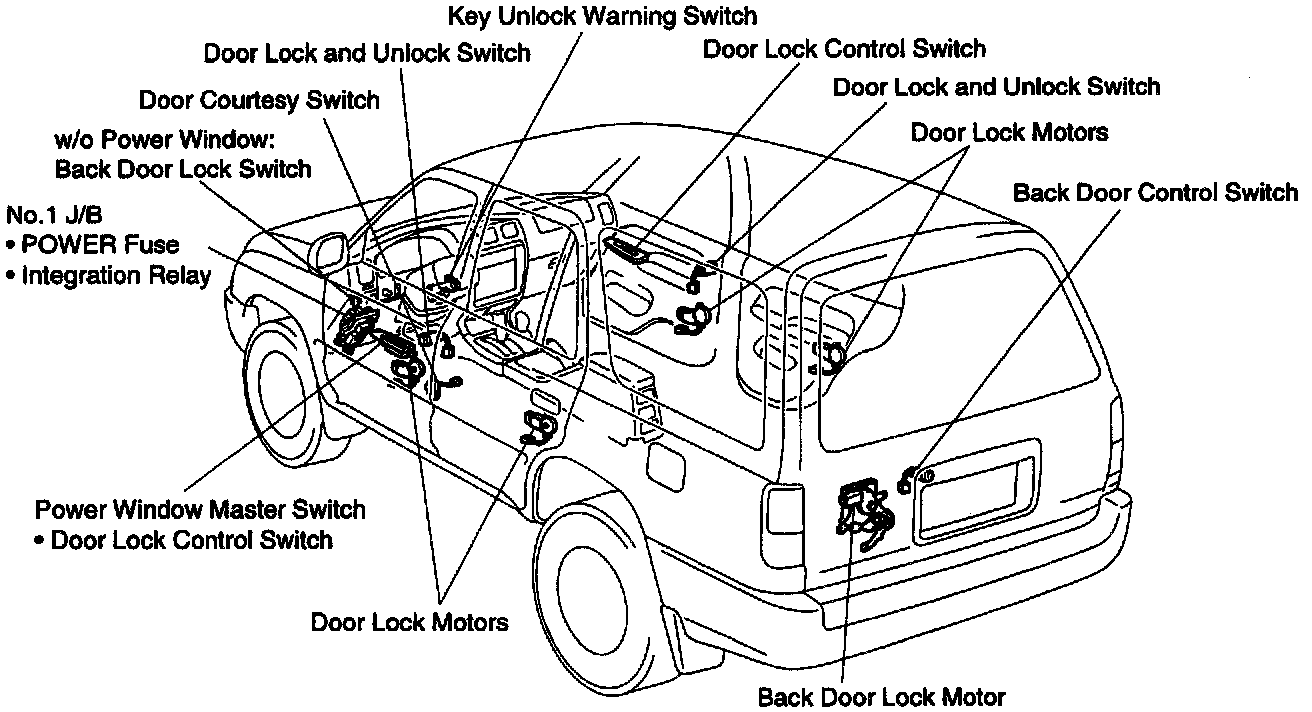 2. Set the door lock control switch to UNLOCK and check that the voltage rises from 0 V to battery positive voltage for approximately 0.2 seconds.