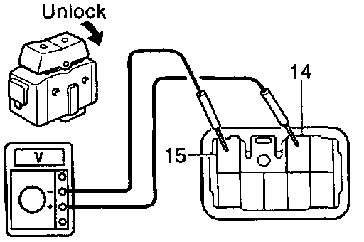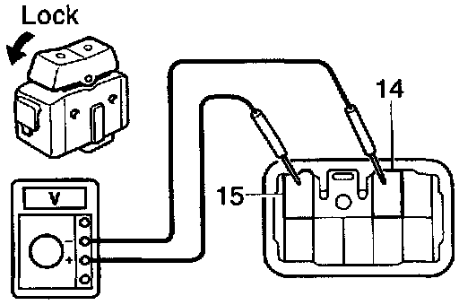 1. Connect the positive (+) lead from the voltmeter to terminal 14 and the negative (-) lead to terminal 15.