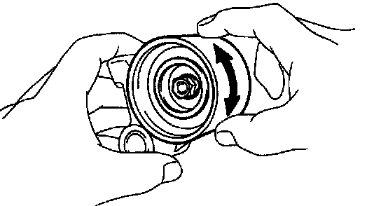 (b) Hold the tensioner with both hands and push the push rod strongly as shown to check that it doesn't move.