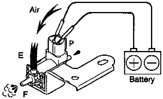 (c) Check that air flows from ports E to F, and does not flow from ports E to P.