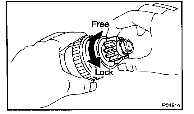 Hold the starter clutch and rotate the clutch pinion gear clockwise and check that it turns freely. Try to rotate the clutch pinion counterclockwise and check that it locks. If necessary, replace the clutch assembly.