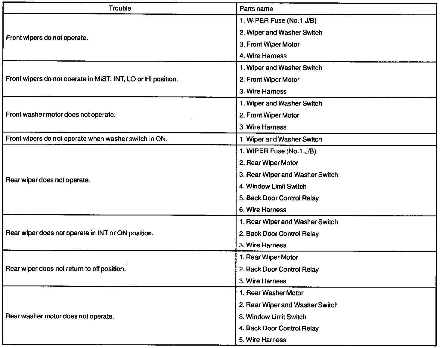 Problem Symptoms Table / Wiper & Washer System: