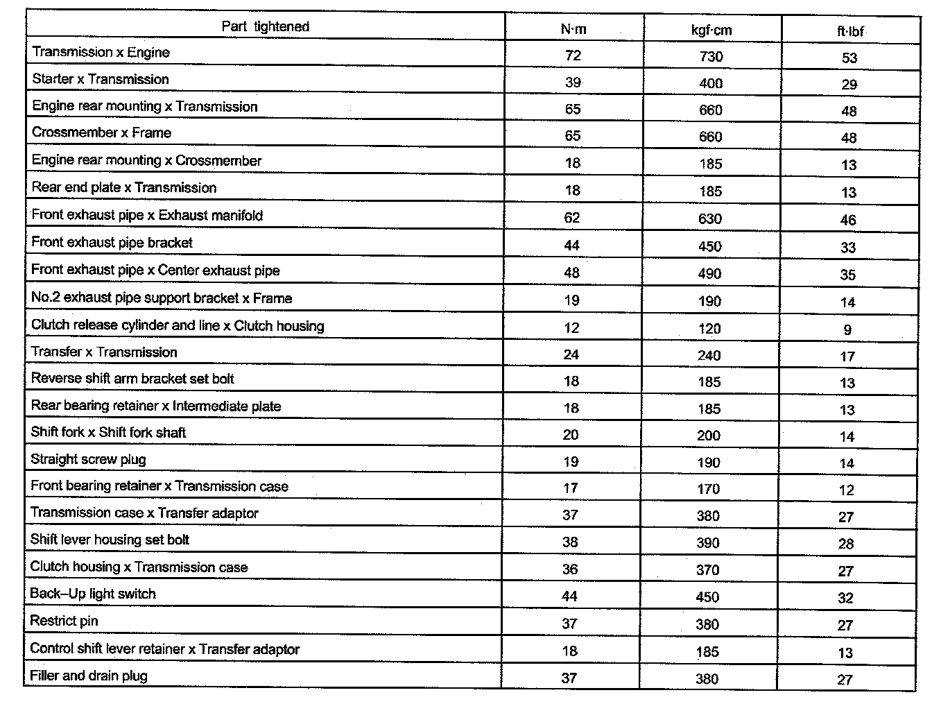 M/T Torque Data