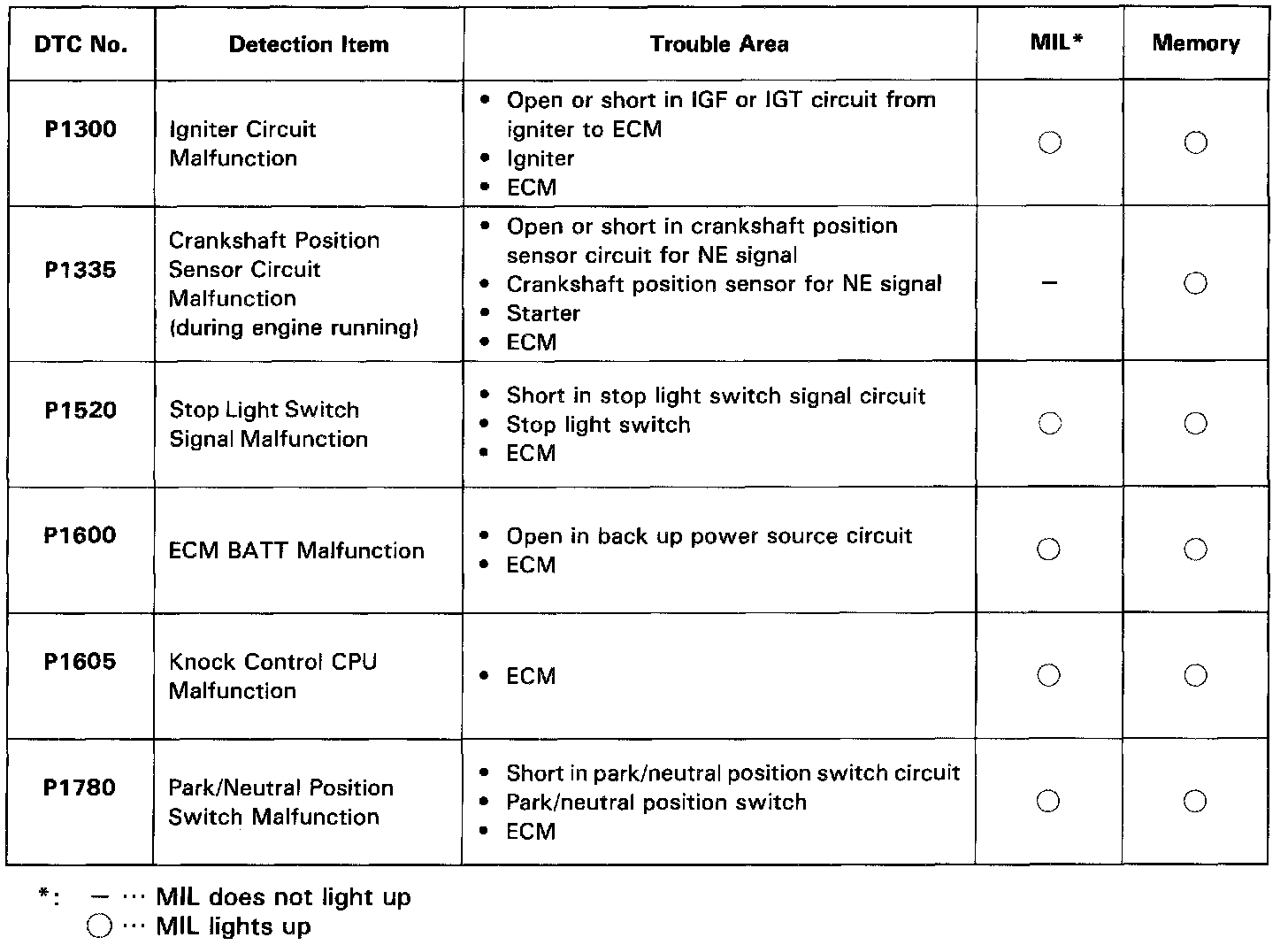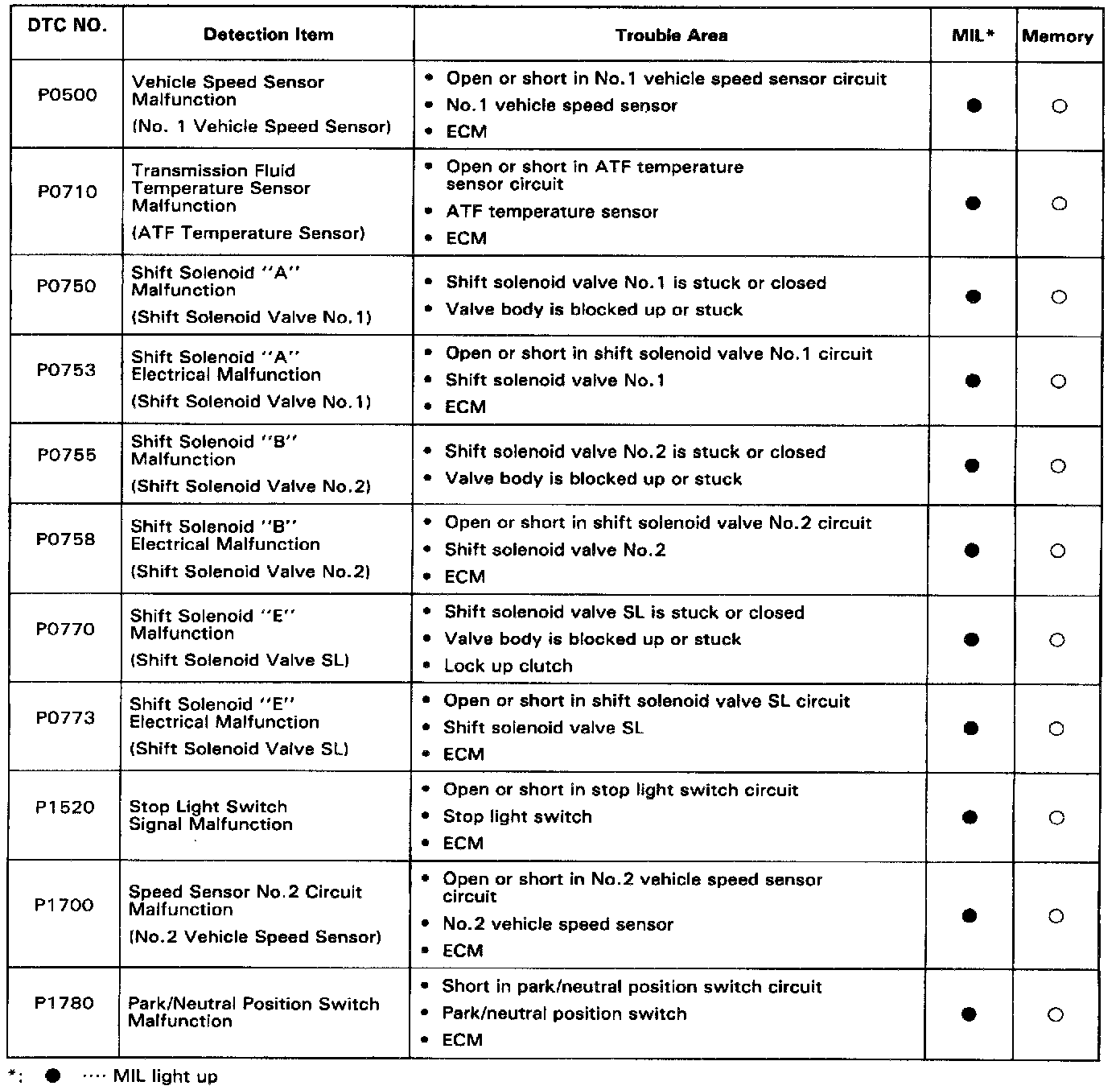 DTC Chart (Automatic Transmission):