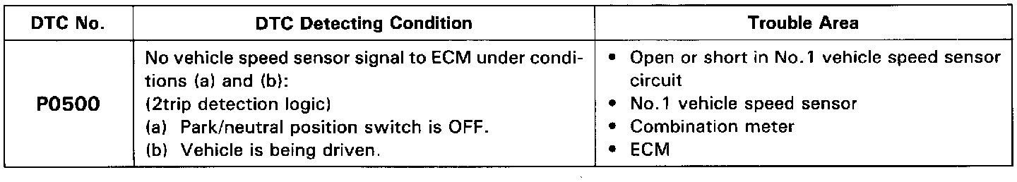 DTC P0500 Vehicle Speed Sensor Malfunction