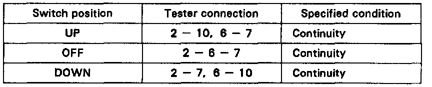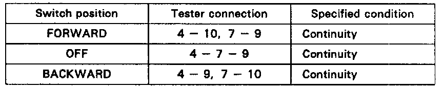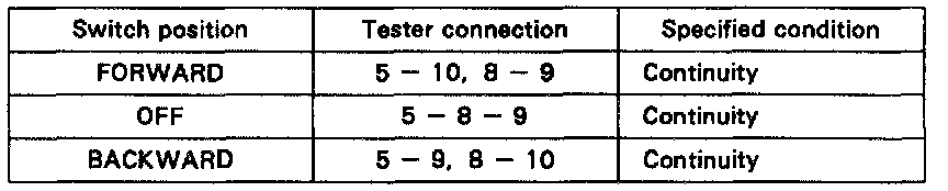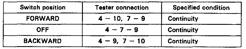 If continuity is not as specified, replace the switch.