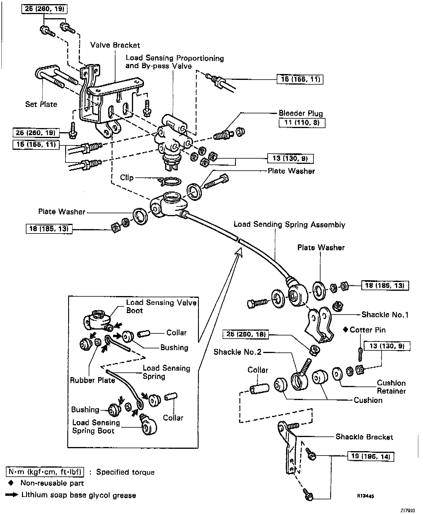 NOTE: One turn of the No.2 shackle changes the fluid pressure by about 98.1 kPa (14.2 psi).