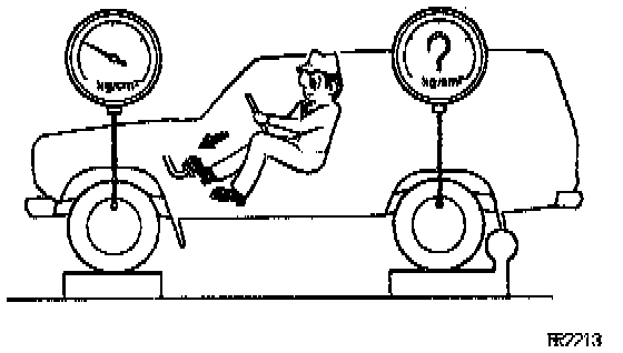 (b) In this position, check the rear brake pressure.