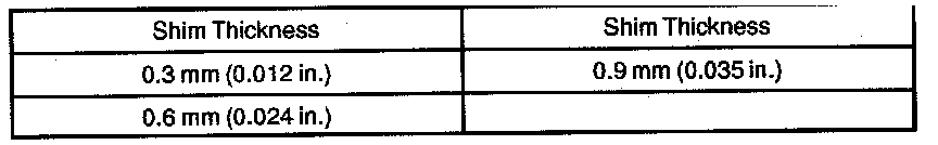 - If the clearance is not within the specification, replace the shim with one of the correct size.