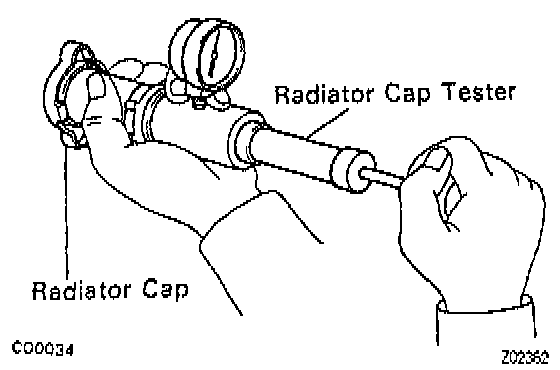 CAUTION: If the radiator cap has contaminations, always rinse it with water. Before using a radiator cap tester, wet the relief valve and pressure valve with coolant or water.