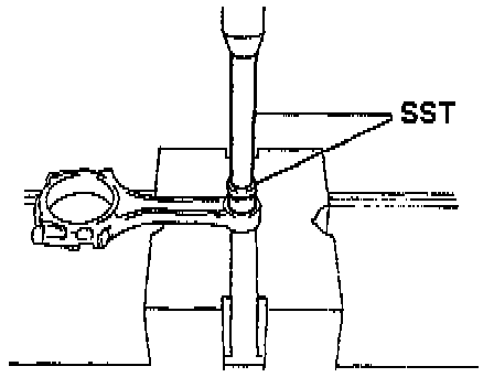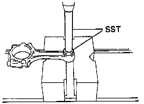 (e) Check the piston pin fit at normal room temperature. Coat the piston pin with engine oil, and push it into the connecting rod with your thumb.
